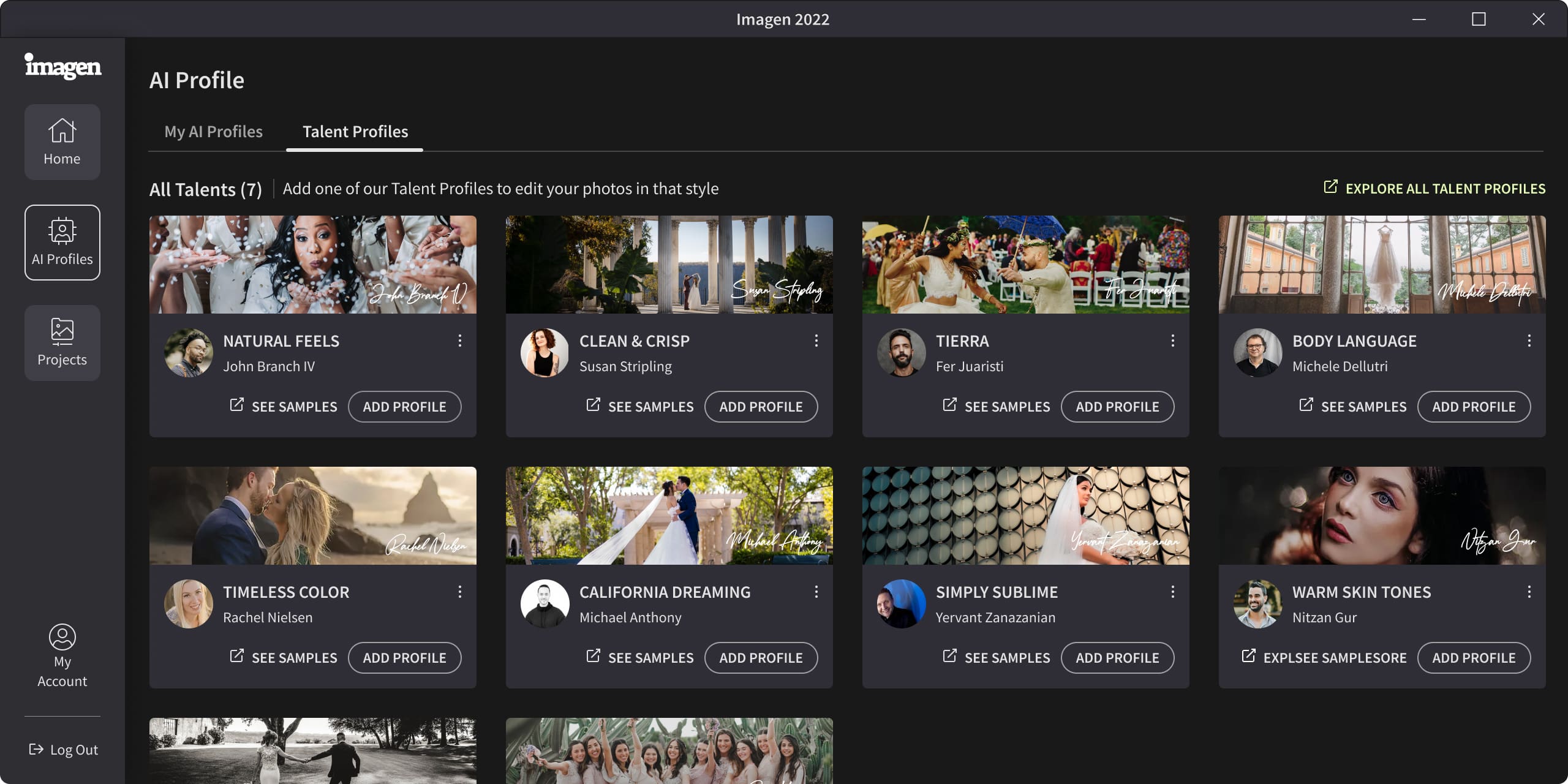 Whether you are exploring new styles or need inspiration, Imagen also allows you to edit your photos using pre-built Talent AI Profiles made by industry-leading photographers.